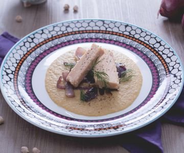 Appetizers Tuna fillets on chickpea and red onion velouté Tender tuna fillets on a chickpea and red onion velouté: a tasty appetizer with a refined touch, featuring a creamy base and a play of textures. Easy 40 min Kcal 222 READ RECIPE