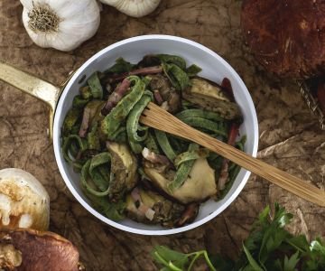 Main Courses Green omelette tagliatelle with mushrooms and speck The green omelette tagliatelle with mushrooms and speck are original fettuccine made from spinach omelettes, cooked like savory crepes. 4.2 Easy 55 min Kcal 627 READ RECIPE