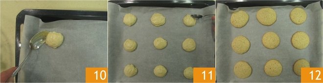 Line a baking sheet with parchment paper, take a spoonful of dough 10, and use another spoon to slide it onto the tray, leaving a couple of inches between each cookie 11. Bake in a preheated static oven at 350°F for about 15 minutes. Once baked, remove from the oven and let your drop cookies cool before enjoying them 12!