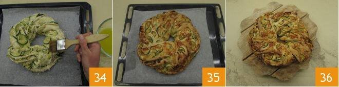 and brush the surface of the Angelica brioche 34. Cook in a conventional oven preheated to 350°F (180°C) for 60 minutes on the lowest shelf, placing another shelf on top to prevent the brioche from browning too much. Take out of the oven 35 and leave your savory Angelica brioche with zucchini to cool before serving 36!
