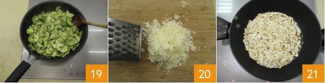 Add the thyme and cook for about 10 minutes 19. In the meantime, grate the caciocavallo cheese 20 and toast the almond flakes in a saucepan 21.