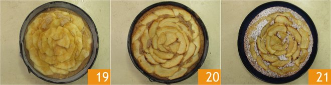 At this point, peel and core the apple for decoration: you will have 0.33 lbs of pulp to cut into very thin slices 16. Arrange the slices on the surface of the cake 17 and sprinkle with brown sugar 18.