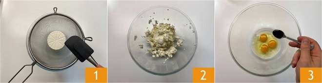 To prepare the apricot and ricotta cake, sieve the ricotta through a sieve 1 to obtain a smooth cream without lumps 2. In a bowl, break the eggs and add the vanilla extract 3.