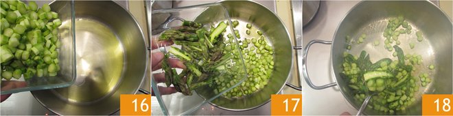 Sauté the asparagus with a drizzle of oil in a high-sided saucepan that you will then use to cook the rice 16 17. Remove them from the saucepan and set them aside 18.