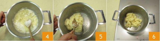 Stir quickly with a spatula or a wooden spoon 4. Once the mixture has thickened 5 continue to cook until the dough detaches from the sides of the pot and a whitish film has formed on the bottom 6.