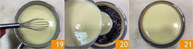 Mix well with a whisk to melt it completely 19. Take the tart and pour the ganache over the layer of jam 20, then place it in the refrigerator for an hour or in the freezer for 15-20 minutes 21.