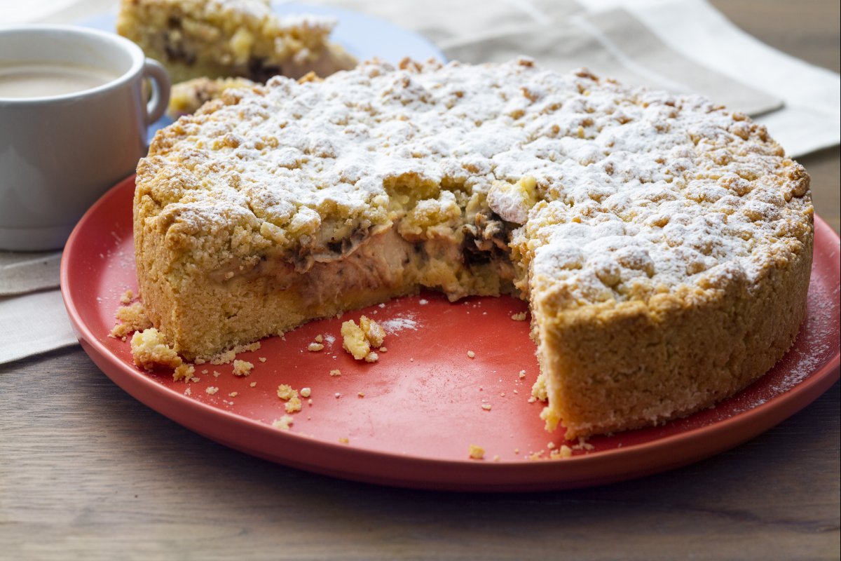 This crumb cake is a tasty treat made with a shortcrust pastry base that isn’t rolled out, but crumbled and spread over the dish, giving this dessert its name. A wide arrange of delicious fillings to suit all tastes can be sandwiched between the base and the crumbly top layer. We’ve already tempted you with Nutella and the one with a sweet and creamy apple filling, and today we aim to surprise you even more. Cappuccino and chocolate crumble is an even more irresistible variation on the theme: Creamed ricotta and mascarpone mixed with coffee and chunks of dark chocolate come together to create a rich and delicious dessert, perfect as a snack but also as a special treat!