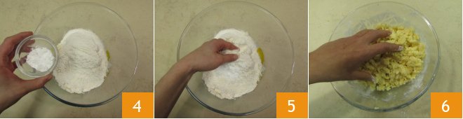 and baking powder (also sifted) 4. Knead quickly with your fingertips 5 to obtain a crumbly mixture 6.