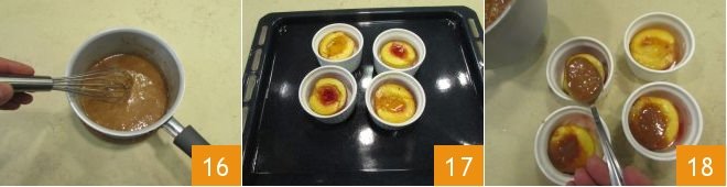 and mix well until all the ingredients are well combined and the caramel is thick and rich 16. Meanwhile, your peaches will be ready: take them out of the oven 17 and pour a generous ladle of caramel over each peach, directly in each small baking dish 18.