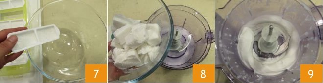 After the cooling time, transfer the cubes to the mixer (7-8) and blend them to obtain a creamy mixture 9.