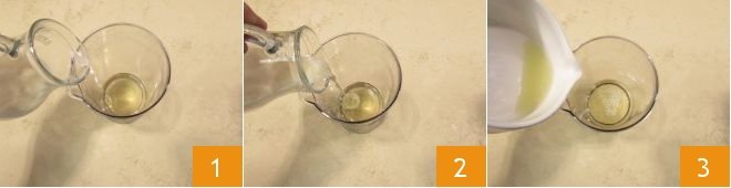 To make the coconut shrimps, start by preparing the accompanying sauces. In a mixer bowl, pour seed oil 1, soy milk 2, and the squeezed and filtered lime juice 3.
