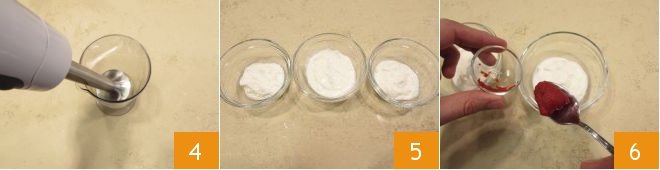 Add a pinch of salt and blend everything 4 until the mixture thickens. Divide the sauce obtained into 3 bowls 5. Leave one natural (it will be your fake mayonnaise) and flavor the other two. In one, add the tomato paste 6,