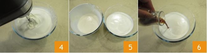 You will need to stop when the cream is already a little thick, but not yet fully whipped 4. At this point divide the mixture into two bowls, pouring about 250 g into one and about 450 g into the other 5. Pour the cold coffee into the latter 6