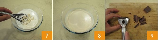 and mix (7-8). Make some chocolate chips using a potato peeler 9.