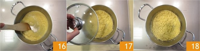 Stir 16 and cover with a lif 17. Leave to rest for a few minutes, until all the water is absorbed 18.