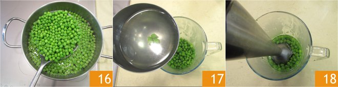 Drain them 16 and pour them into a tall glass with some of their water 17. Blend them with an immersion blender 18.