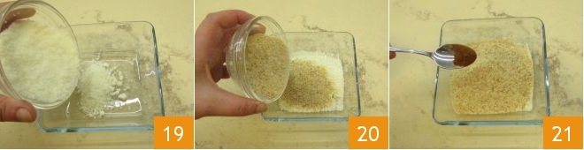 It's time for the third breading: in a bowl, pour the Pecorino cheese 19 and add the breadcrumbs 20. Add the smoked sweet paprika 21