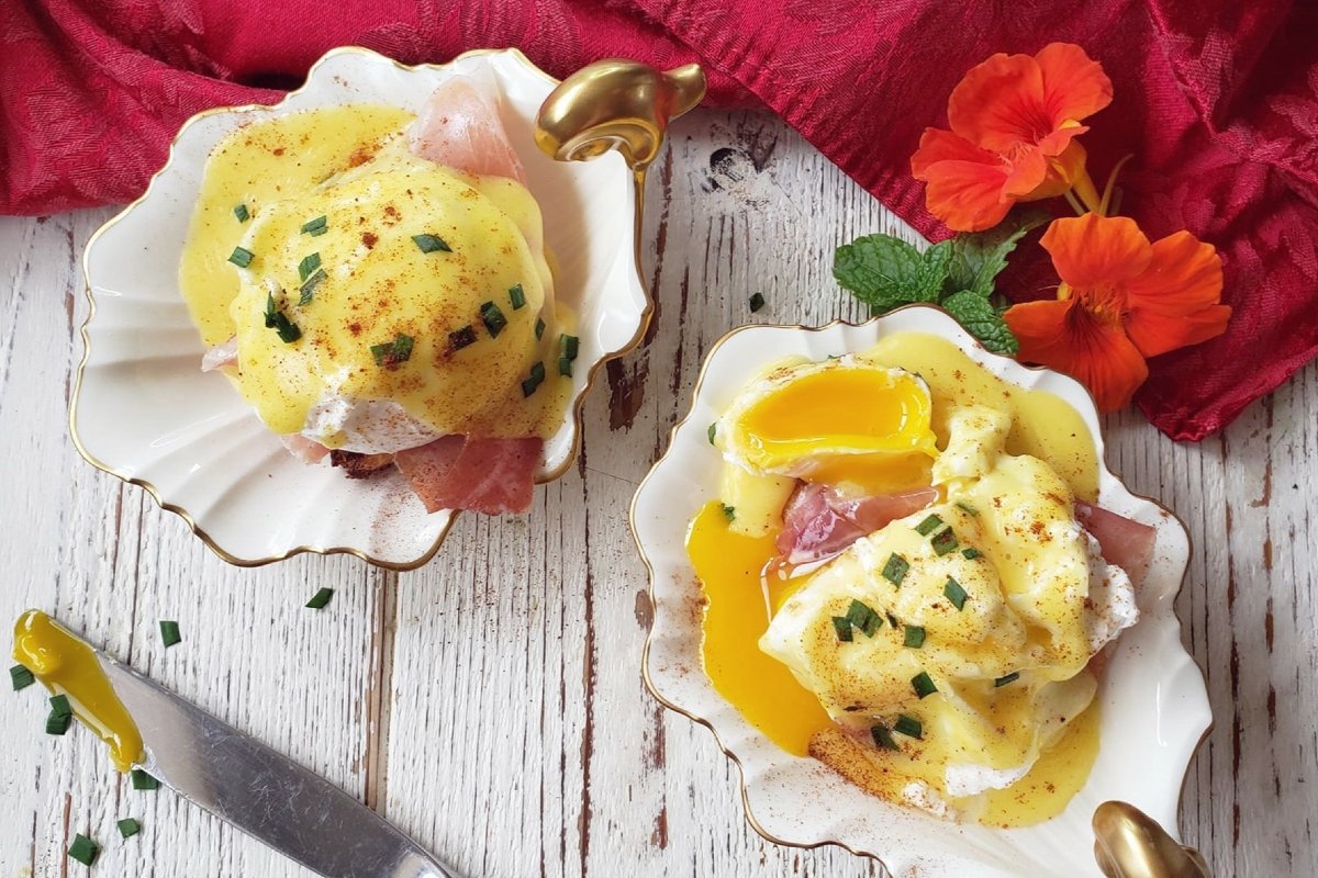 Eggs Benedict are an all time favorite, especially for brunch, in America. Certain celebrations, such as Mother's day, or Easter, would not be the same without this dish. It can be a little demanding in the preparation, as poached eggs are easy to overcook, but with our instructions you will do just fine. In addition, today we are proposing a new presentation to the classic: passion fruit hollandaise. The traditional recipe uses lemon juice, but passion fruit is as tart, tangy and ends with a sweet tropical note.