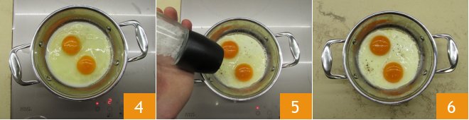 Cook on very low heat for 6-8 minutes 4, seasoning with salt and pepper to taste at the end of cooking: be careful not to salt the yolk to avoid staining it 5. Here are the fried eggs ready, enjoy them immediately 6.