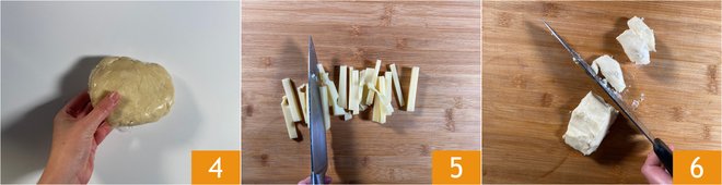 Cover it and leave in the fridge for at least 30 minutes 4. Now turn to the filling: Cut the Gruyere 5, Taleggio6,
