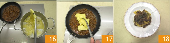 Drain the pasta 16 and add it to the pan with the sauce 17, stir and serve nice and hot 18.