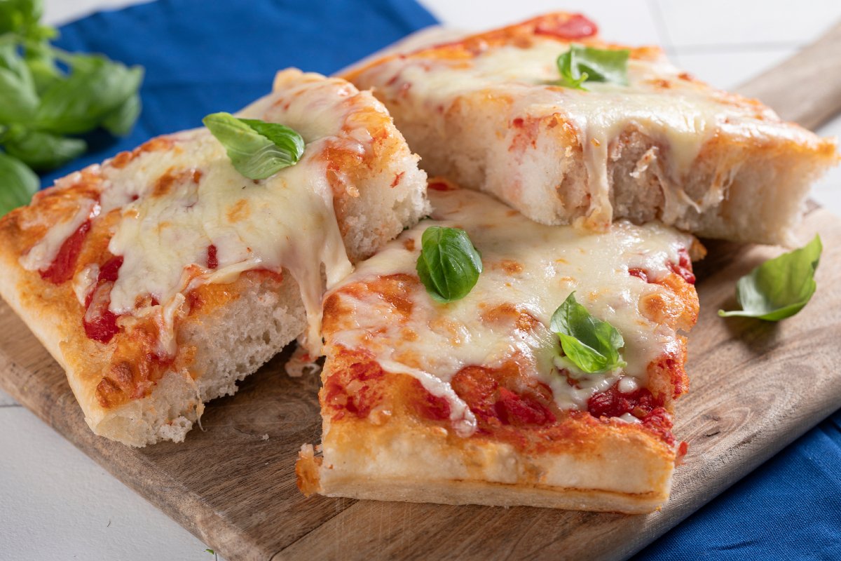 Do you think a gluten-free pizza can't be as tasty and flavorful as the traditional one? With our recipe, you'll definitely change your mind! A Thick and soft tray pizza baked in the oven and topped like a simple Margherita, which you can easily personalize with your favorite ingredients, taking inspiration from classic recipes like spicy pizza or Capricciosa pizza. The dough with high hydration does not develop the gluten network, so it is advisable to use a stand mixer to handle it more easily. The double rising and the two-stage baking will take care of the rest! Is your mouth watering just looking at it? Then get to work, the gluten-free pizza deserves a taste right away!