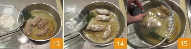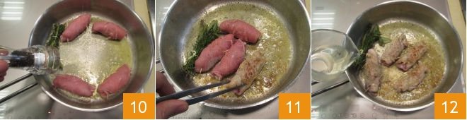 Add pepper too 10, brown them for 3 minutes on one side, then turn them and brown them for 1 minute on the other side 11. Sweat with white wine 12 and let it evaporate.