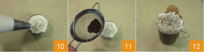 place it in a pastry bag and garnish the cups 10. Add a dash of dark cocoa powder to taste 11 and garnish with a macaroon 12. Serve your hot coconut chocolate!