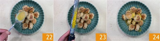 When the meatballs are ready, plate them in a serving bowl or dish, pouring over their aromatic cooking juice 22. Grate a final generous sprinkle of lemon zest 23 and serve hot, completing with a few fresh thyme leaves to taste 24.