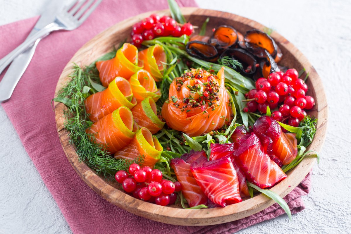 Smoked salmon is an unmissable ingredient in Christmas and NewYear's Eve starters, but this year we present you with a delicious and refined alternative: home made marinated salmon! A raw fish carpaccio that is scenographic in all its three versions, perfect for special occasions. With a single slice of fresh blast frozen salmon you can create three colors and flavors: citrus, beet and cuttlefish ink. Three different marinades, made from a single base, will characterize the salmon with aromas and vibrant colors, to be savored unadulterated on a slice of toasted bread spread with a little butter. Marinated salmon is a dish that is alluring at first sight and wins everyone over right from the first bite. Discover how you can make it all by yourself!