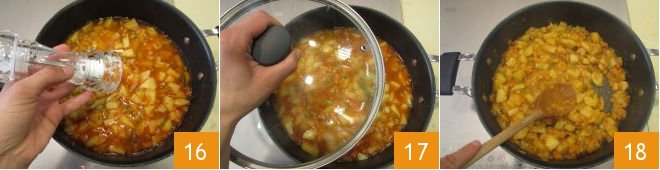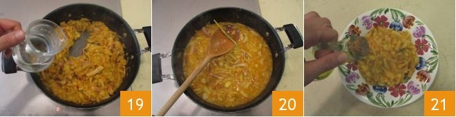 and salt 16. Finally, cover with the lid and cook over low heat for 30 minutes, adding a little more water if needed 17. Once the potatoes have softened, mash some of them with the back of a wooden spoon 18, then pour in the mixed pasta.