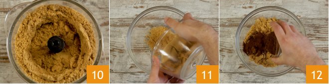 and blend them until fine crumbs are obtained 10. Then pour them into a bowl 11, add the unsweetened cocoa powder 12,