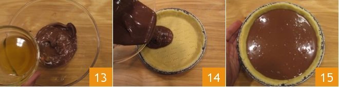 and melt it in the microwave or alternatively in a bain-marie (if you do not have cocoa butter, you can replace it with the same amount of regular butter), add it to the Nutella little by little 13 mixing until it is completely absorbed. Finally pour the just obtained cream into the mold 14 and spread it over the entire surface 15.