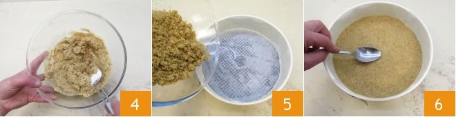 Mix together well to get a sand-like consistency 4. Butter a 9-inch (24-cm) cake pan and line with parchment paper. Pour in the graham cracker mixture 5 and use a spoon to compact it well and create the crust 6. Place in the refrigerator for 30 minutes or the freezer for around 10 minutes.