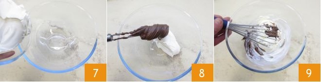Meanwhile, move on to your filling. Pour the cream cheese into a bowl 7 and add a tablespoon of Nutella 8, then mix well using a whisk or spatula 9.