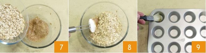 and add the oat flakes 7. Mix everything until you get a homogeneous mixture 8. Then equip yourself with a mini muffin pan and using a brush soaked in oil, grease each section 9.