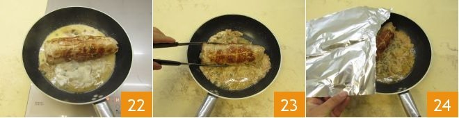 At this point 22 transfer to a preheated oven at 350°F for 7-8 minutes, then turn the round 23 and continue cooking for another 7-8 minutes. Remove from the oven, cover with aluminum foil 24 and let it cool completely at room temperature.