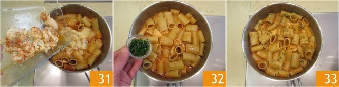 Finally, add the remaining shrimp and scampi 31. Season with chopped fresh parsley 32 and serve the paccheri with shrimp and scampi cream hot 33.