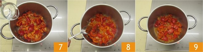 Cover with water 7 and season with paprika 8, cook over medium heat for 10 minutes. Once cooked 9,