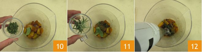 Fragrance with sage, stripped thyme 10, the rosemary sprigs 11, and start blending 12.