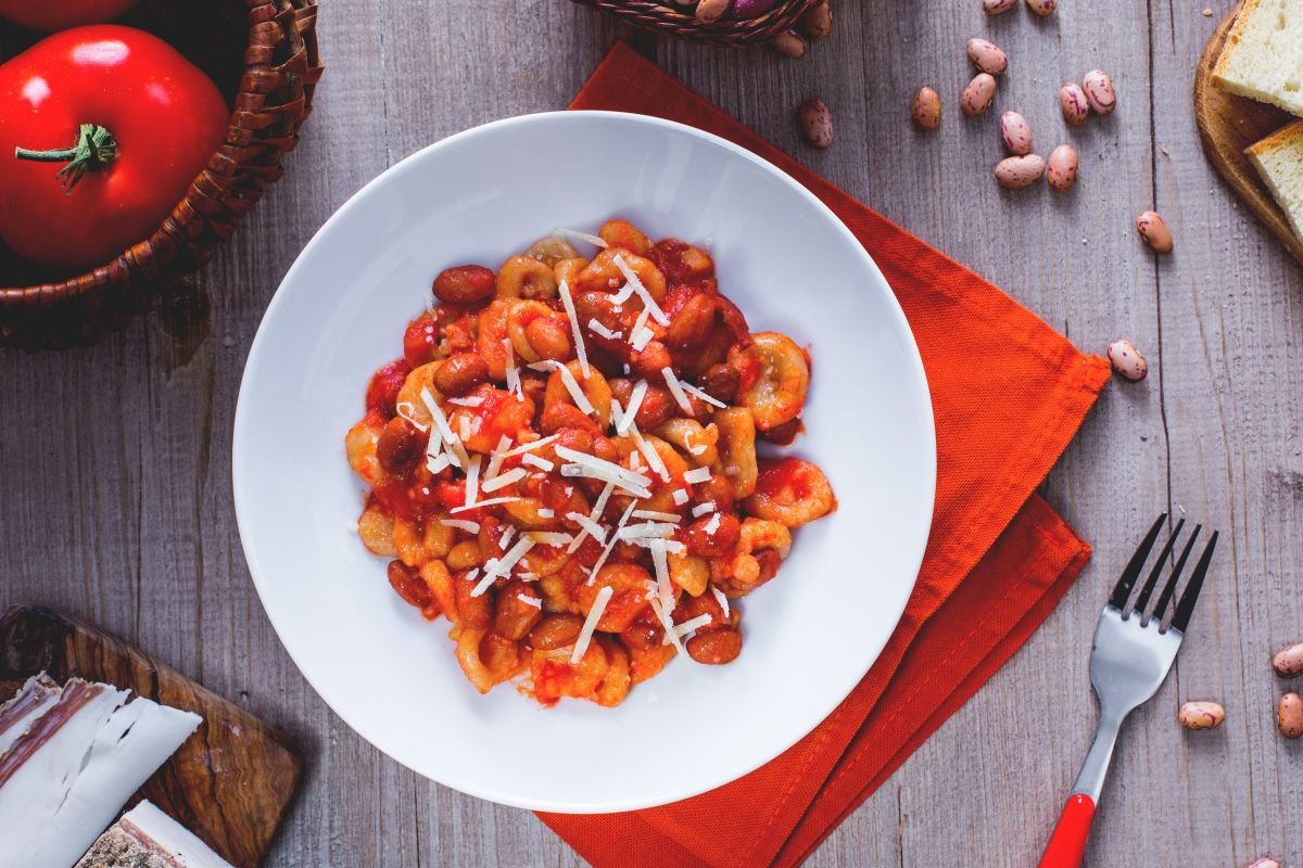 The long and fascinating road of Italian flavors brings us with this recipe to discover a territory that enchants at first glance and then irresistibly captivates once its culinary treasures are discovered: we are talking about the Piacenza hills and the recipe we propose is that of pisarei e fasò. Literally pisarei and beans, pisarei e fasò are small dumplings made of flour, breadcrumbs, and water accompanied by a hearty tomato and bean sauce flavored with lard. A recipe with ancient origins: it is said that this pasta shape was born in the Middle Ages with the ingredients that farmers and monks had at their disposal. It seems that pisarei were offered to pilgrims from all over Europe passing along the Via Francigena. One hypothesis about the origin of the name suggests it derives from the Spanish word 'pisar' which means 'to crush,' the gesture used to create the typical central hollow perfect for collecting the sauce. Over time, beans and pancetta were added to the pisarei to make the dish even more nutritious. And they are still prepared this way today! Come and discover our version of the delicious pisarei e fasò!