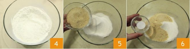 Now prepare the pisarei dough: sift the flour into a bowl 4, then add the breadcrumbs 5 and salt 6.