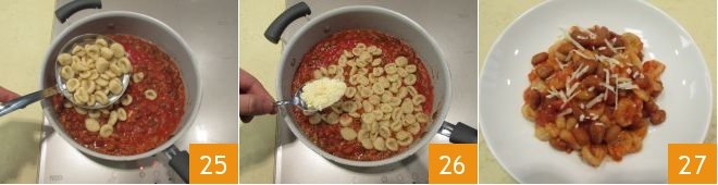 directly into the pot with the beans 25, flavor with grated Grana Padano 26 and serve the pisarei e fasò piping hot with some additional Grana shavings if desired 27!