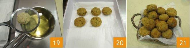 Immerse no more than 2-3 balls at a time in plenty of oil at 330°F 19. It will take 2-3 minutes to brown the surface 20. Your quinoa, zucchini, and stracchino bites are ready… enjoy them hot or warm 21!
