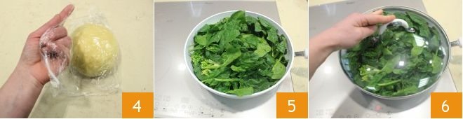 Transfer to a lightly floured work surface: continue to work the dough vigorously until it has a compact and elastic consistency. Shape the dough into a ball and cover it with plastic wrap so that it does not dry out 4. Let it rest for at least 30 minutes in a cool place, away from drafts to prevent it from drying out. While the fresh pasta rests, dedicate yourself to the filling. Take a non-stick pan in which you place the well-rinsed spinach. Let them dry over low heat covered with a lid 6.