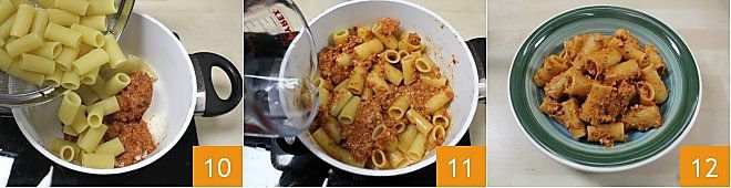 Add the rigatoni to the pesto 10, stir to color the pasta, and add more cooking water if necessary, adjusting according to the thickness of the sauce 11. Stir to combine everything and cook for a further two minutes over low heat to keep the sauce from drying out. Now your rigatoni with sun-dried tomato pesto is ready to be served and enjoyed 12!