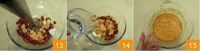 and then blend everything with an immersion blender 13. Add a bit of water as needed 14 until you get a smooth velvety soup of the consistency you prefer 15.