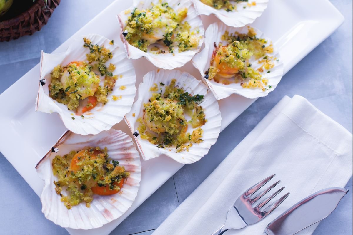 Scallops au gratin is a perfect starter for parties: a delicate and aromatic breadcrumb coating flavored with thyme, marjoram and parsley perfectly complement this refined seafood, an exquisite alternative to more common mussels. Scallops au gratin are perfect for serving to your guests at dinner on Christmas Eve or for Christmas lunch. Scallops au gratin are simple to make, even at the last minute. All you have to do is prepare a moist breadcrumb coating and select the juiciest scallops...once prepared simply bake, leaving you plenty of time to set the table! Let the party begin!