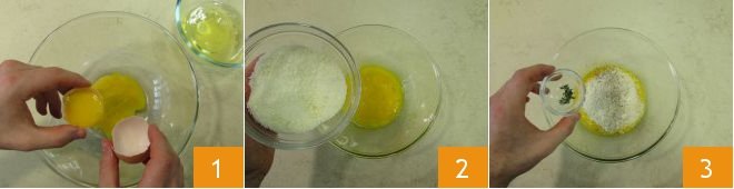 To prepare the seafood carbonara, start by heating the water for the pasta and salting it as soon as it comes to a boil. Meanwhile, separate the eggs. You’ll need 6 yolks 1 for this recipe. Pour into a bowl and add the grated Parmigiano Reggiano cheese 2, pepper, salt, and thyme leaves 3.