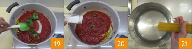 flavor with the basil 19 and add salt and pepper to taste 20. Bring abundant salted water to the boil in a pan and add the pasta 21.